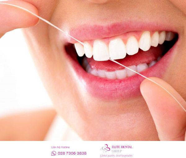 Dùng chỉ nha khoa hoặc tăm nước để vệ sinh răng.