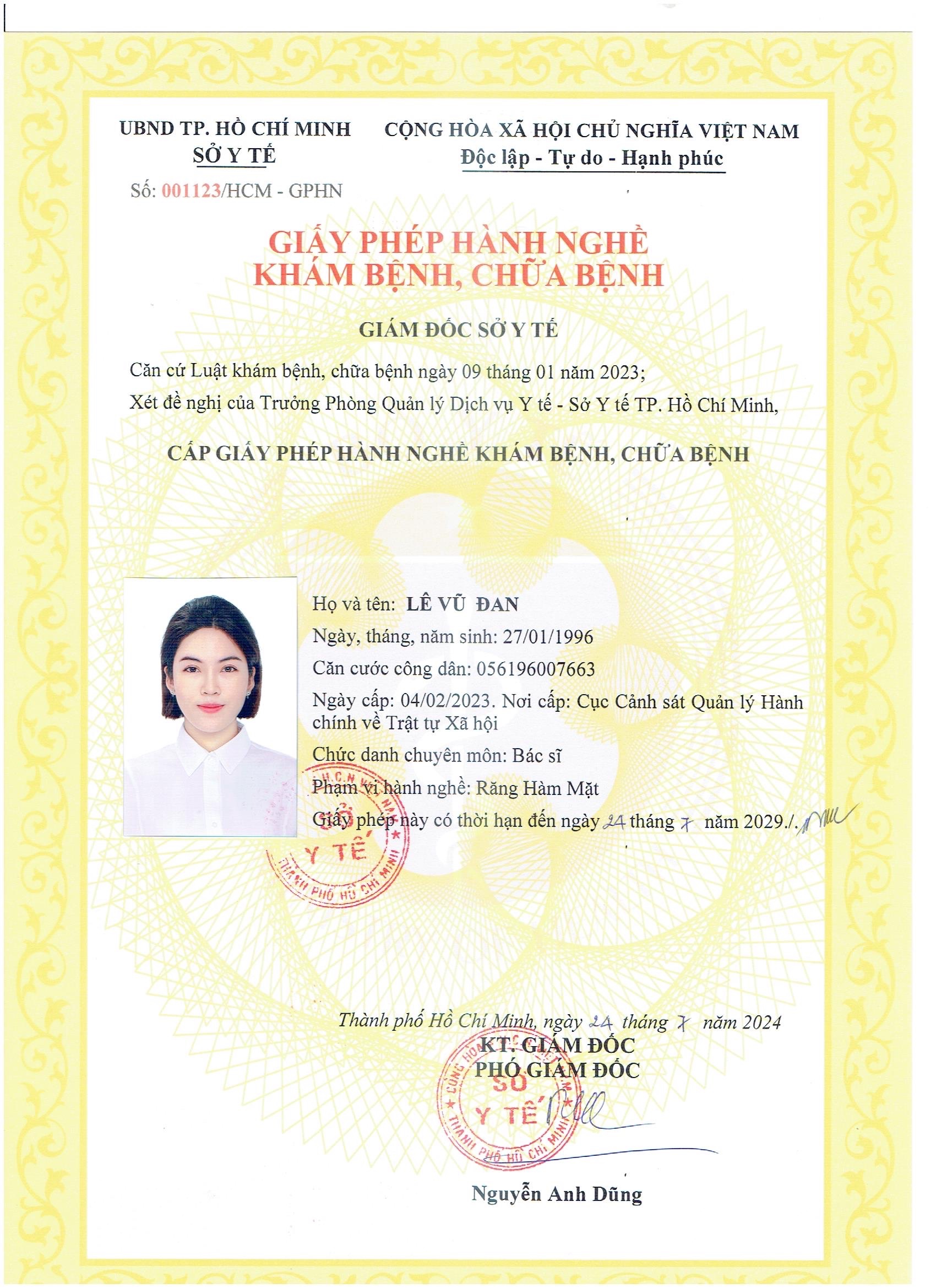 Sau khi tốt nghiệp Đại học Y Dược khoa Răng Hàm Mặt, bác sĩ Lê Vũ Đan tiếp tục tham gia các khóa học liên quan để trau dồi kiến thức chuyên môn, mang lại kết quả quả điều trị hiệu quả, an toàn và bền vững đến bệnh nhân.