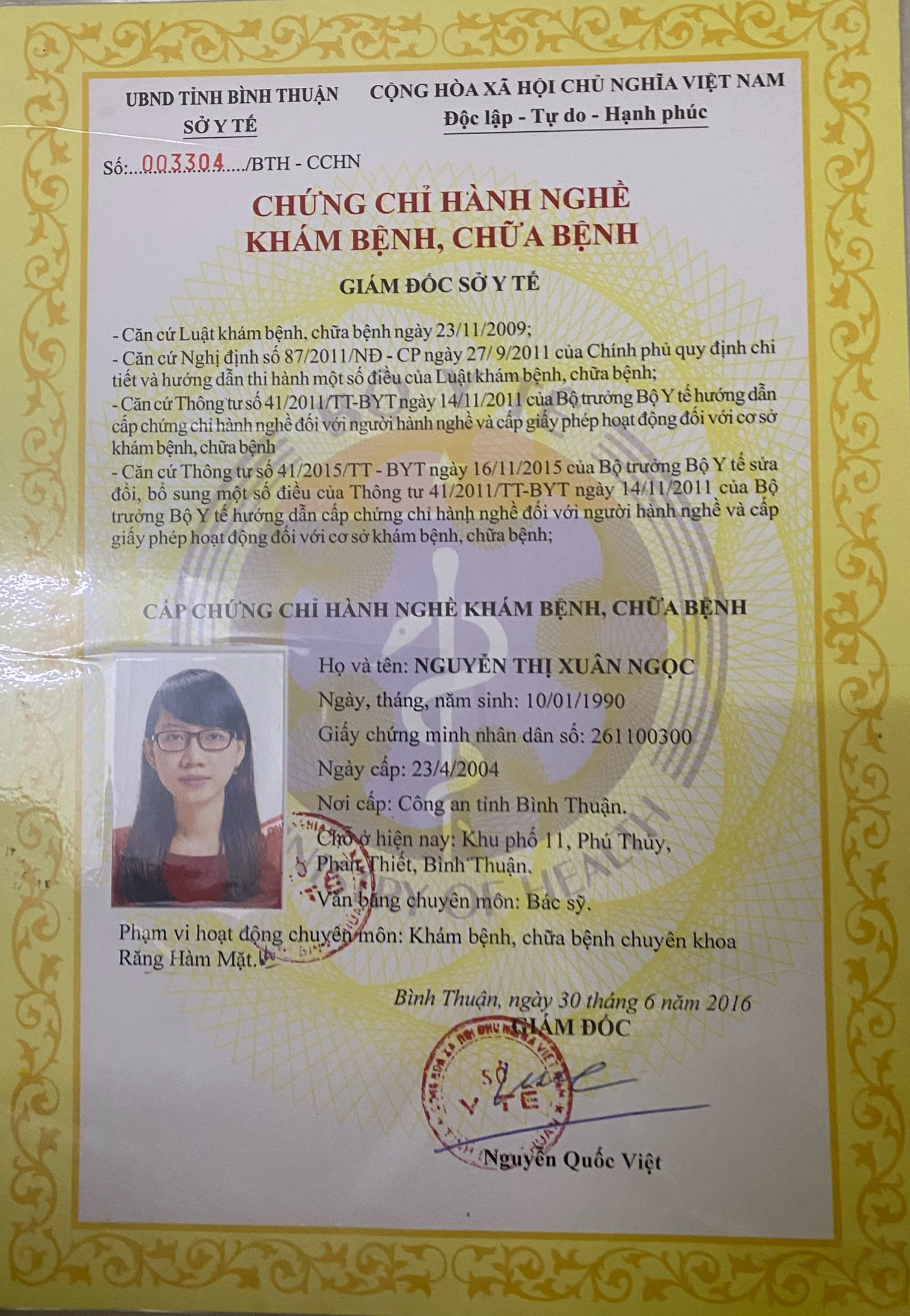 Thạc sĩ/Bác sĩ Nguyễn Thị Xuân Ngọc đã có quá trình học tập xuất sắc tại trường đại học Y Dược TPHCM, chuyên ngành Nha khoa. Sau khi hoàn thành việc học ở trường, bác tiếp tục vừa đi làm vừa theo học Thạc sĩ Răng hàm mặt. Song song đó là tham dự nhiều khoá đào tạo chuyên sâu của chuyên ngành chỉnh nha để nâng cao kiến thức chuyên môn.