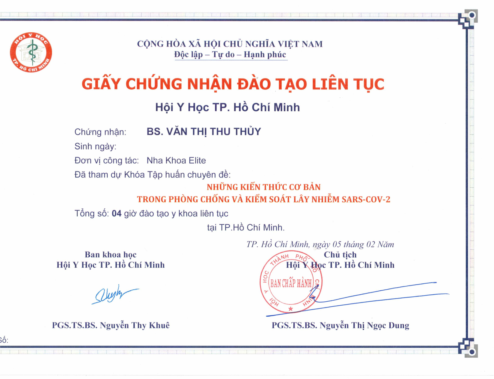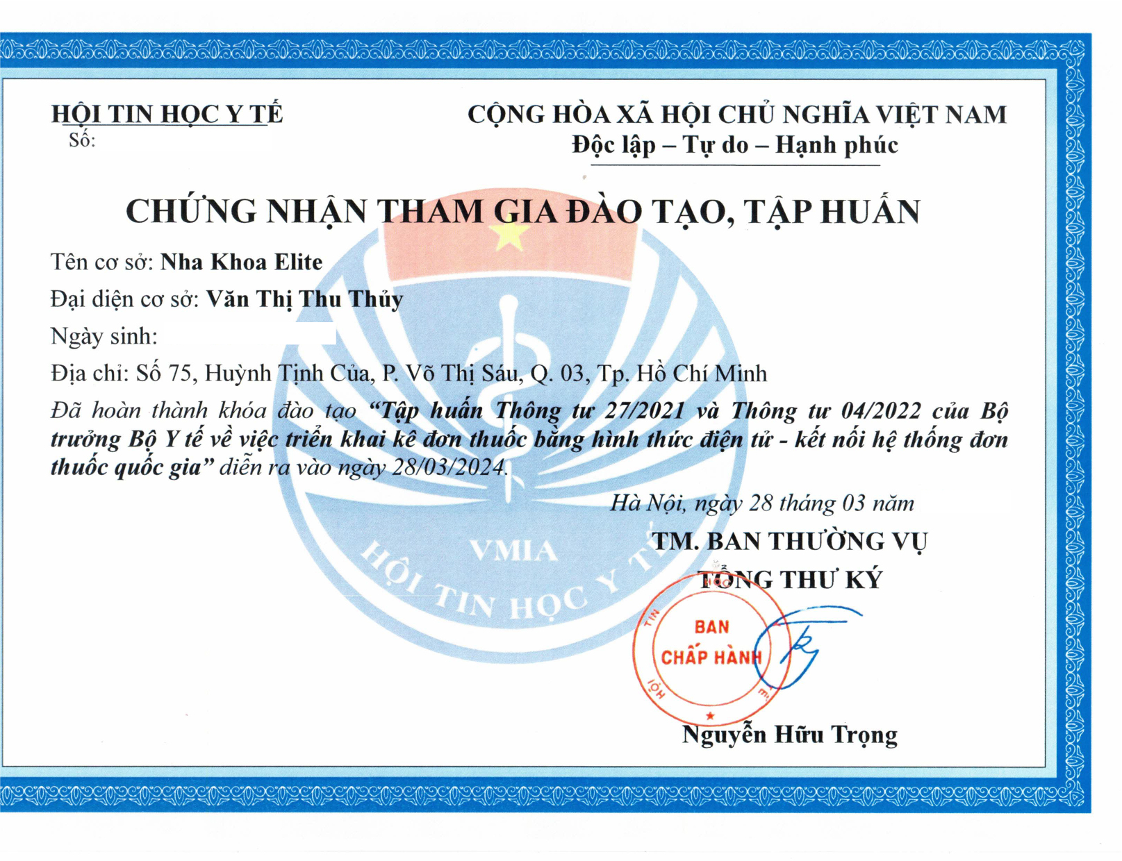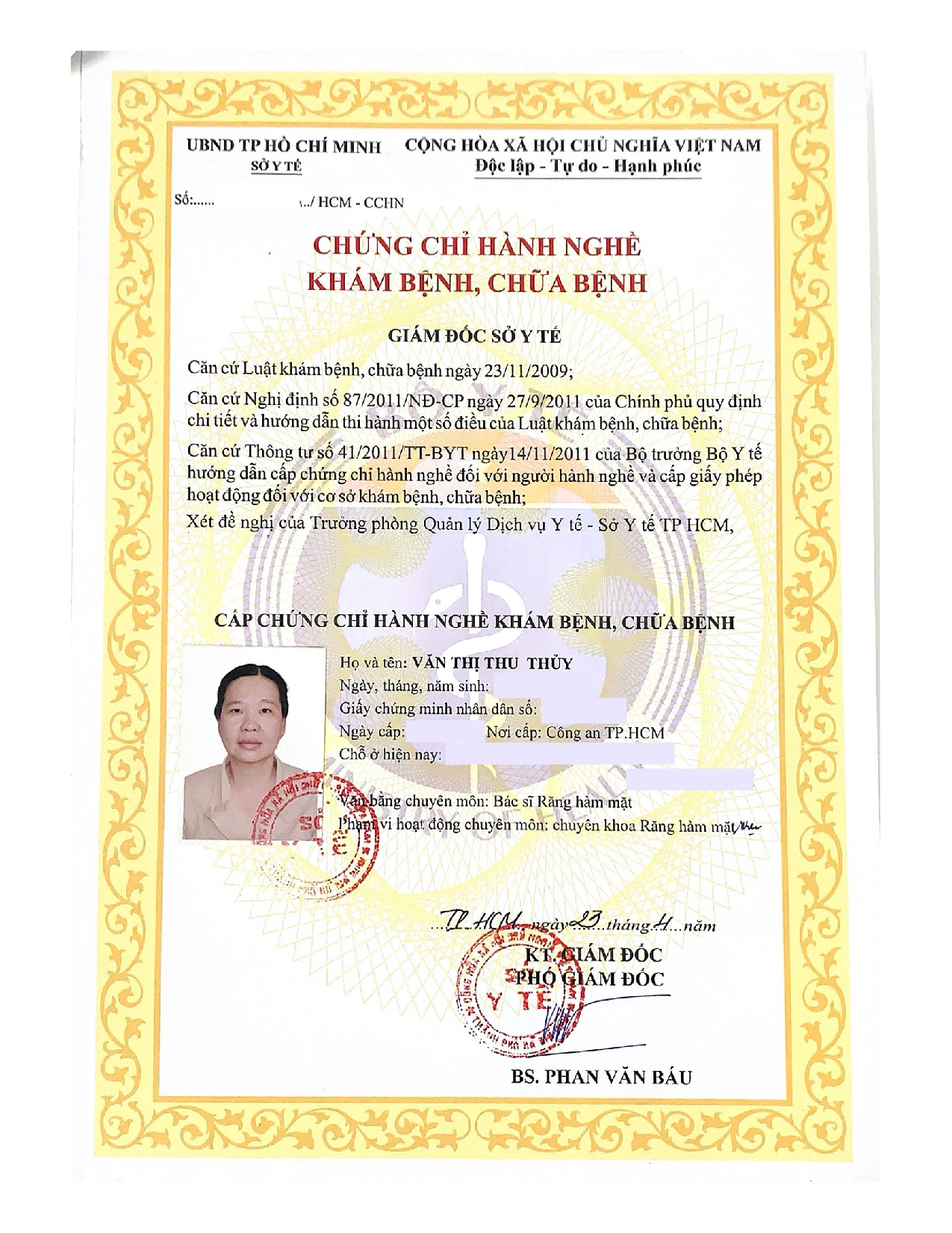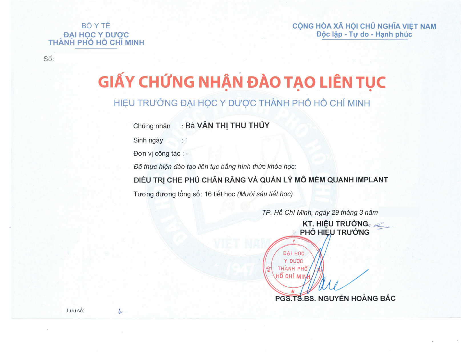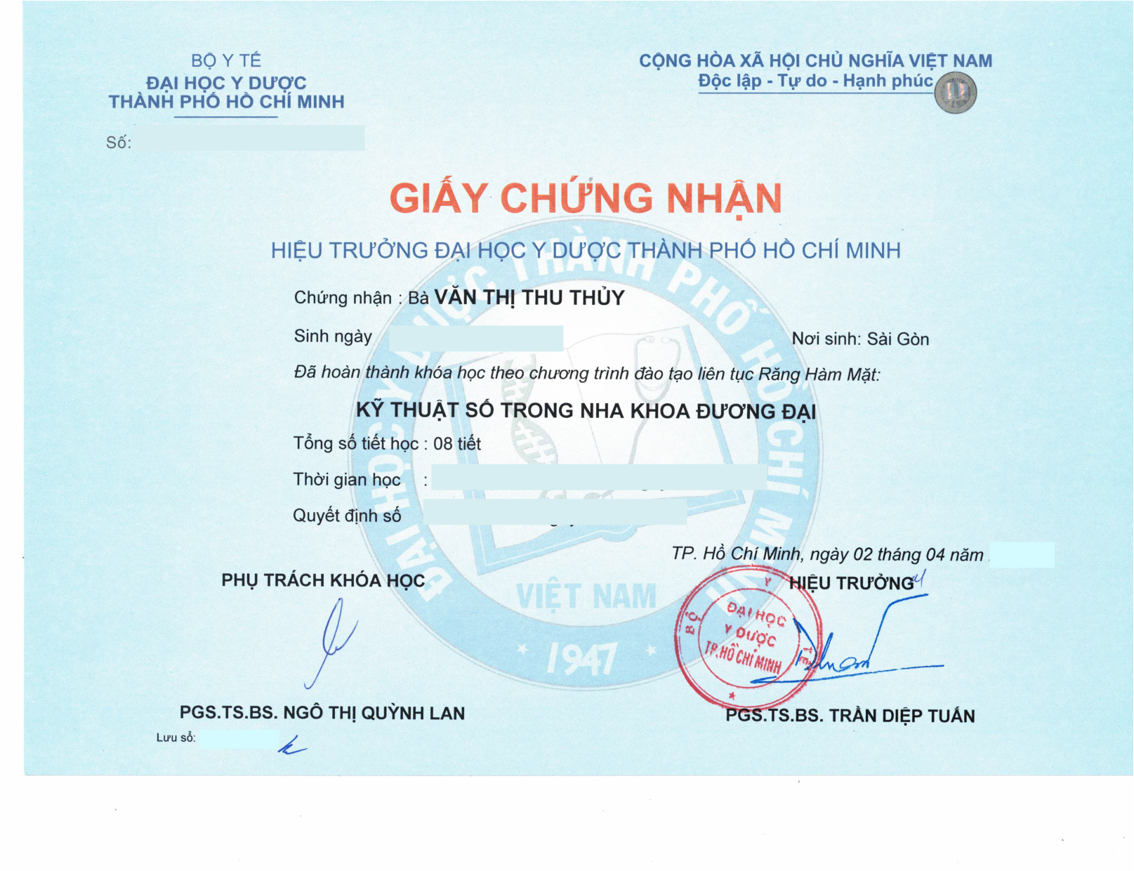 Có chứng chỉ Cấy ghép Nha khoa từ Đại học Y Dược TP.HCM.