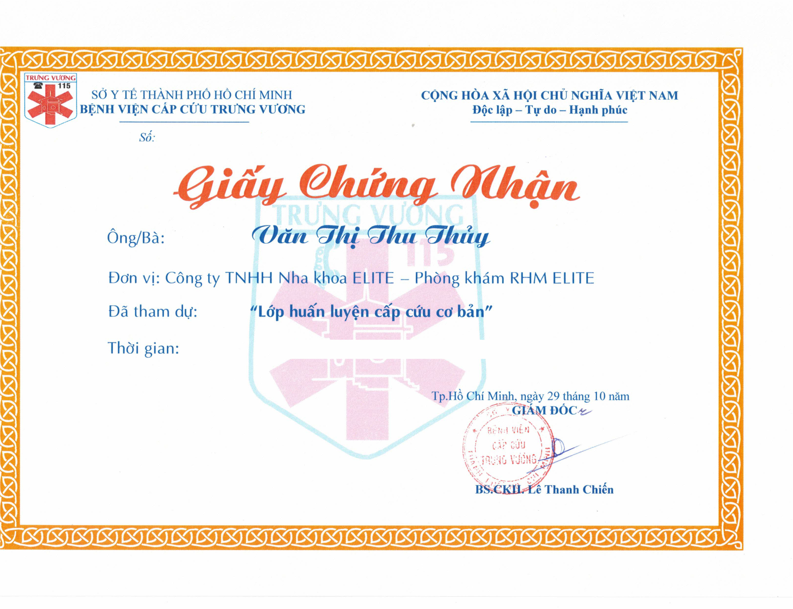 Bác sĩ Văn Thị Thu Thủy đã dành 16 năm làm việc tại khoa Răng hàm mặt của bệnh viện Tân Bình. Tiếp đó là 5 năm làm việc tại khoa Răng hàm mặt bệnh viện An Sinh. Và từ năm 2012 đến nay, bác đang công tác tại Elite Dental chi nhánh Huỳnh Tịnh Của.