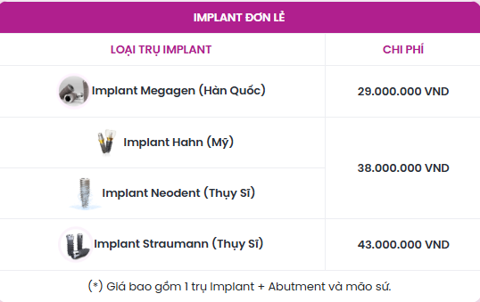 Khách hàng có thể tham khảo bảng giá trồng răng Implant chi tiết tại đây để so sánh các phân khúc trụ khác nhau.