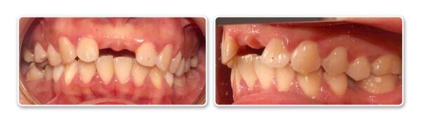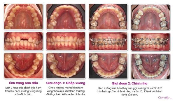Mất 2 răng cửa chính cửa hàm trên lâu năm, xương vùng răng cửa đã bị tiêu.