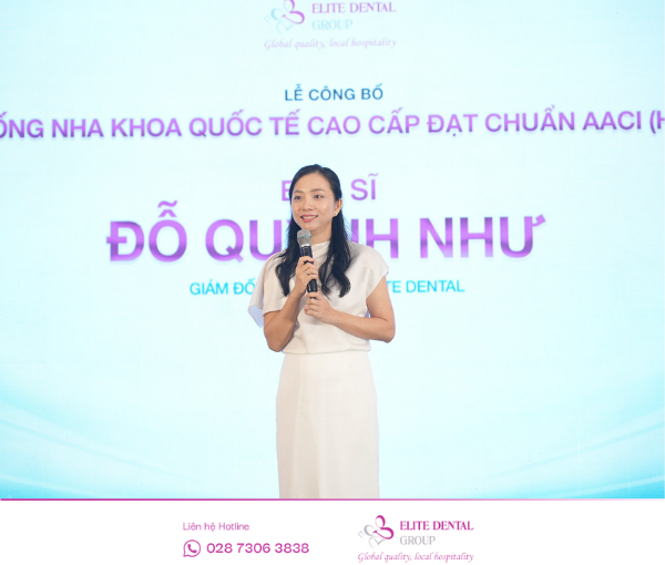 “Sau 13 năm hoạt động, chúng tôi nhận thấy đã đến lúc những nỗ lực bền bỉ của toàn bộ đội ngũ cần được kiểm chứng và ghi nhận bởi một chuẩn mực khách quan, minh bạch. Việc đạt chuẩn AACI là minh chứng rõ ràng cho năng lực nội tại của đội ngũ và sự kiên định trong triết lý điều trị lấy bệnh nhân làm trung tâm” – Bác sĩ Đỗ Quỳnh Như, Giám đốc điều hành Elite Dental.