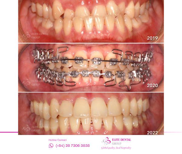 Trường hợp niềng răng mắc cài kim loại thành công, với nụ cười khỏe đẹp và tươi tắn tại Elite Dental.